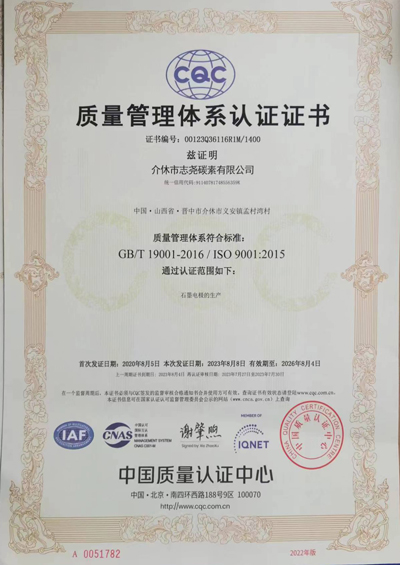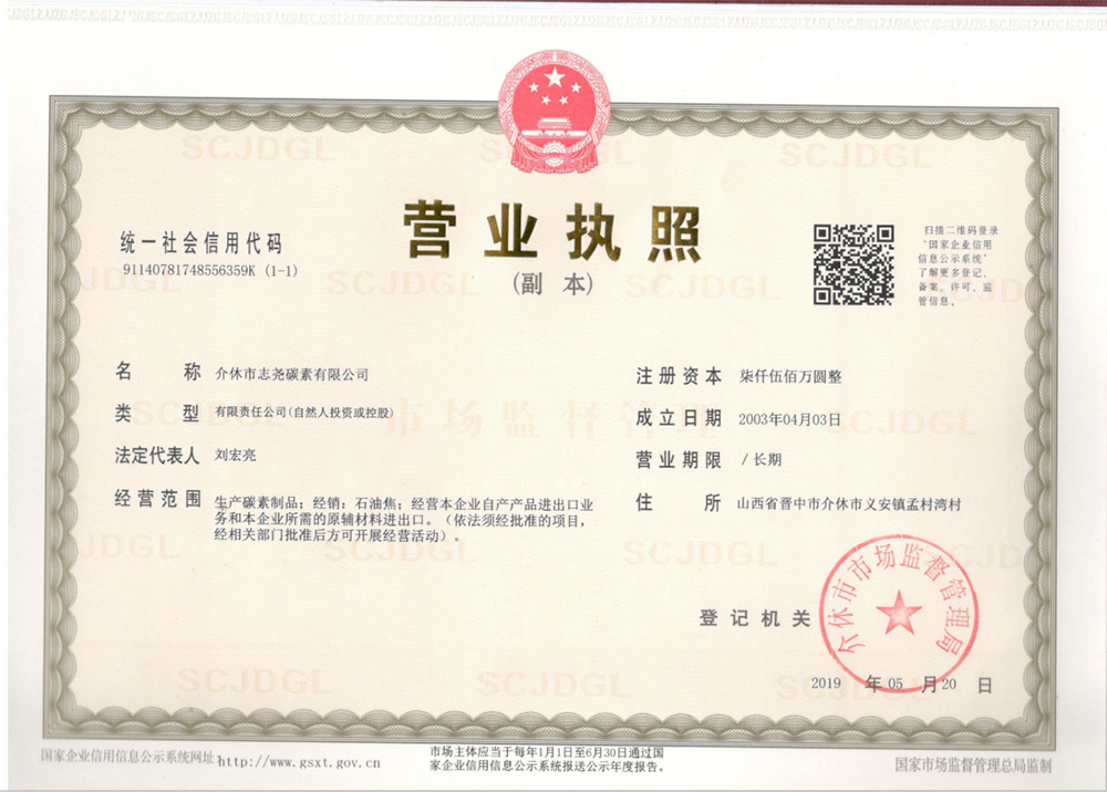The company has been awarded “Shanxi Province Quality Credit A-level Enterprise” by Shanxi Quality Supervision Bureau. It has been rated as “AA” credit enterprise by ICBC and BOC for many years, “Safe Production Advanced Enterprise” in Jinzhong City, and “Economically Advanced Enterprise” in Jiexiu City. Enterprise, "transformation across advanced units" and other glorious titles. In July 2013, the company led the establishment of the Jiexiu Carbon Industry Association. The general manager Zhao Yaozhi was elected as the vice president of the Jiexiu Carbon Industry Association in 2013. He was elected as the president of the Jiexiu Carbon Industry Association in 2013. It has been increasingly upgraded, and has accumulated rich reputation resources for the future development and growth of our company. The company passed the ISO9001:2015 quality certification in September 2016, the national utility model patent on January 11, 2017, and the national invention patent on April 24, 2018.